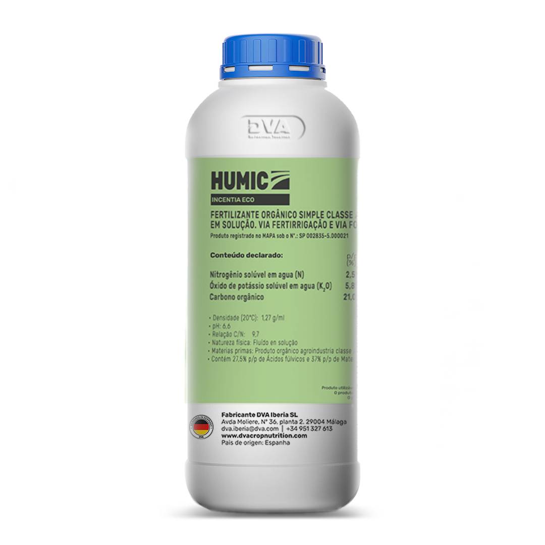 Incentia Eco Humic, é obtido a partir da destilação de açúcares de origem vegetal. Deve ser aplicado nos momentos mais críticos do desenvolvimento da planta: – Pós-transplante, Crescimento, pré-floração desenvolvimento do fruto. A composição húmica de Incentia Eco Humic é 100% procedente dos ácidos fúlvicos de origem vegetal. Apresentando as seguintes características: – Melhor comportamento cuando aplicado ao solo via fertirrigação e via foliar.
