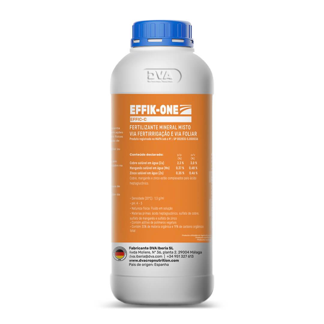 Incentia EFFIK-ONE é formulado com a tecnologia Incentia EFFIK-C® baseada em nano hidrocolóides orgânicos, com ações bio-surfactantes, que conferem ao produto capacidades físicas e químicas únicas, promovendo um aumento na absorção de nutrientes bloqueados no solo, uma maior e eficiente penetração nas células vegetais quando aplicado via foliar ou via tronco das árvores, sendo um potente “carrier”. Os microelementos Cobre, Manganês e Zinco, intervêm em vários processos metabólicos das plantas e ajudam tambêm na proteção dos cultivos. O uso de Incentia EFFIK-ONE melhora: