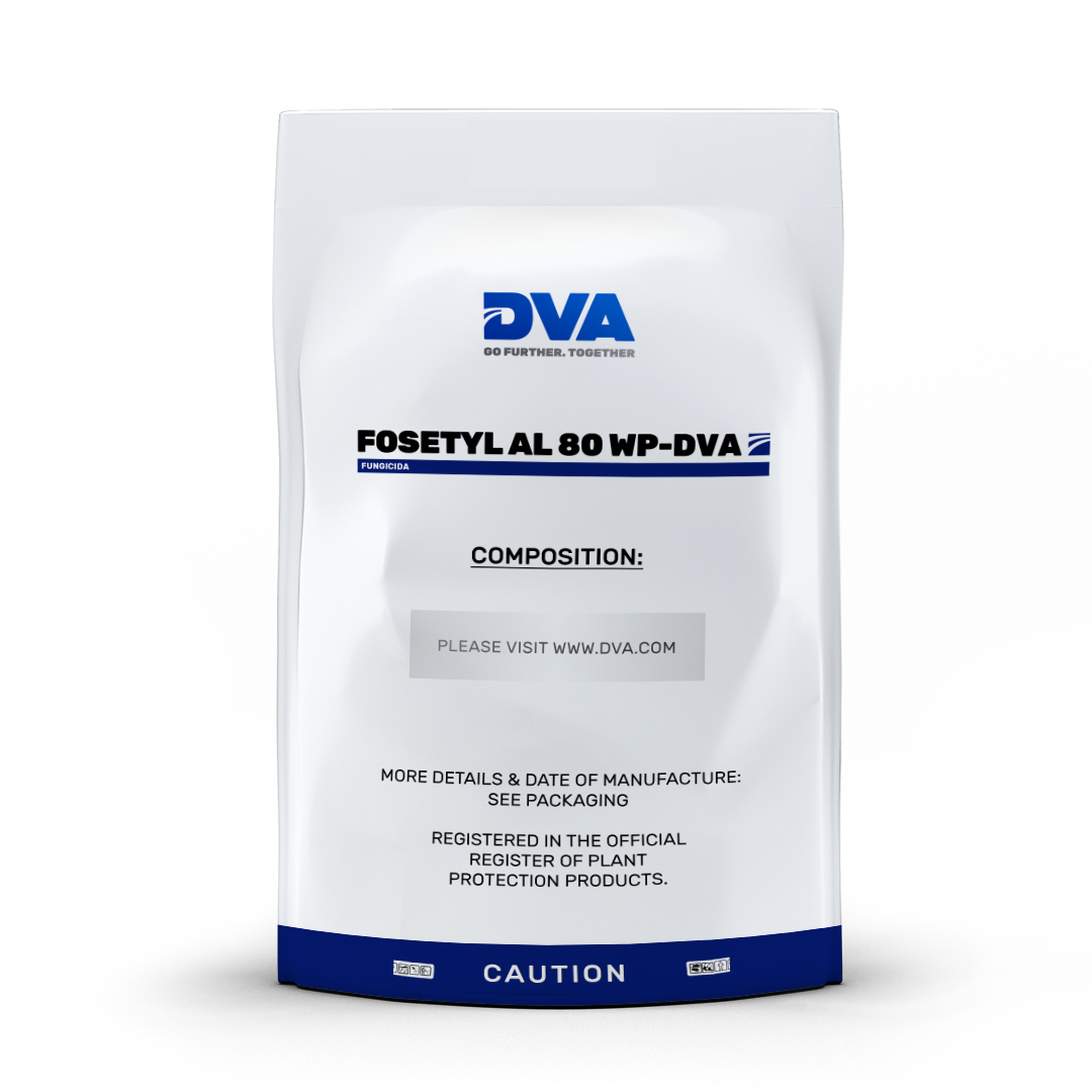 FOSETYL AL 80 WP – DVA is a recommended systemic fungicide in preventive applications on actively growing crops, to protect the inside of the plant against fungal attack. When absorbed by the plant, it is rapidly metabolized and transported by the sap to the whole of the vegetation, including the roots and sprouts that form after the application and stimulates the self-defense of the plants, minimizing the appearance of resistant strains.
