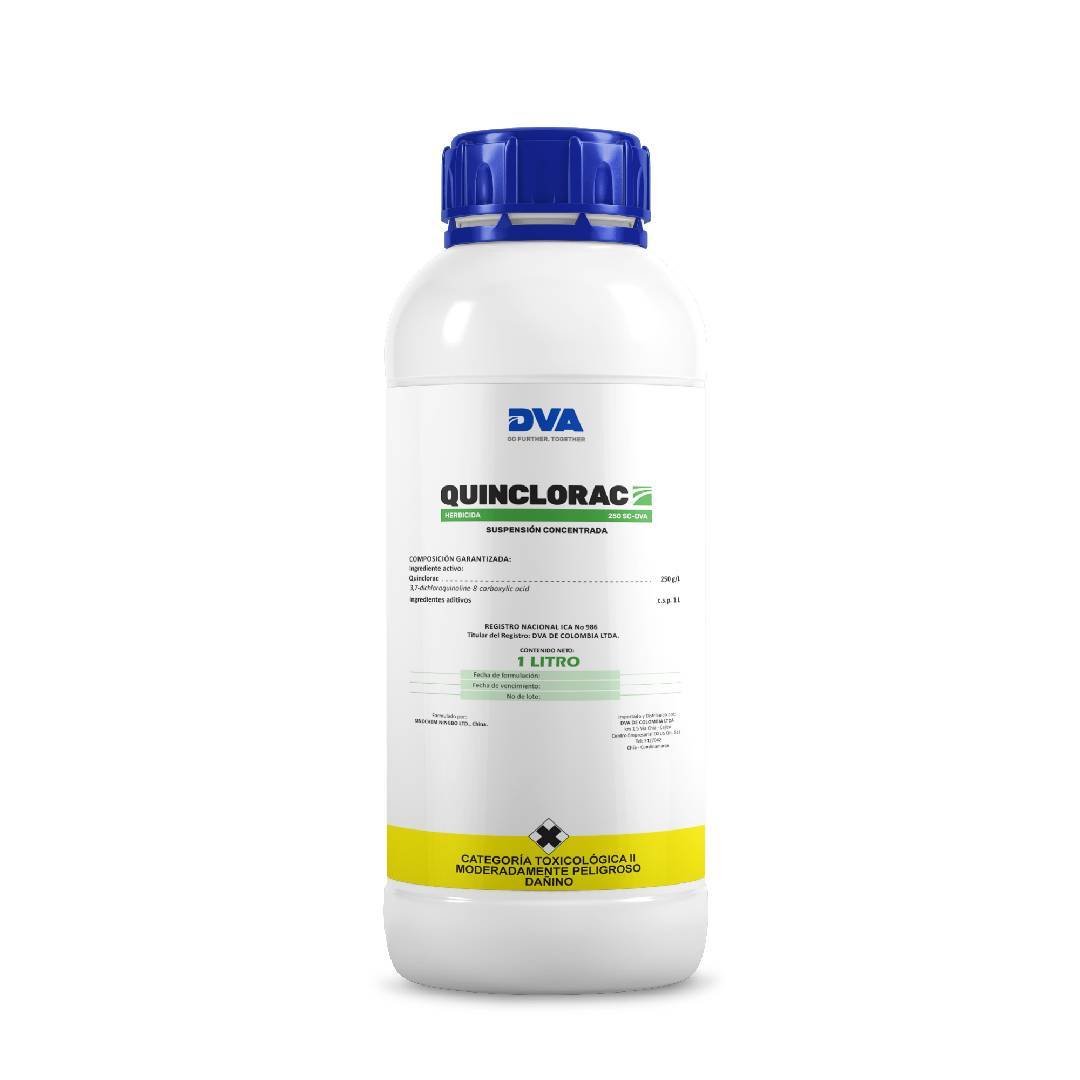 QUINCLORAC 250 SC – DVA es un herbicida selectivo al cultivo de arroz para el control selectivo de malezas de hojas anchas, inhibiendo rápidamente su crecimiento, se acumula en los puntos de crecimiento, siendo absorbido rápidamente por raíces y hojas, se transloca acropétala y basipetalamente. Posee actividad preemergente y postemergente para el control de malezas gramíneas, hojas anchas y ciperáceas. El control es más efectivo en malezas en crecimiento activo, especialmente en sus primeros estados de desarrollo.