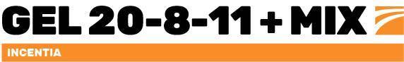 Incentia GEL 20-8-11 + MIX un fertilizante especial en forma de gel con alto contenido en nitrógeno, con un equilibrio 2,5-1-1,3 compensado con fósforo y potasio, con micronutrientes y pobre en cloruro.