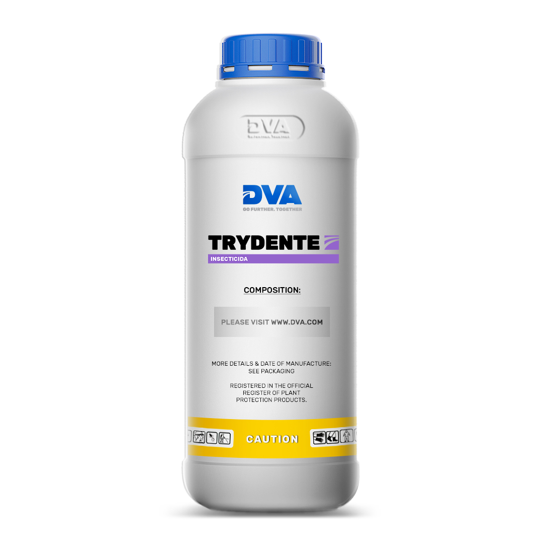 TRYDENTE is an insecticide consisting of three active ingredients (Thiametoxam, Lambdacialotrina and Lufenuron) that give it extensive control for various insects that affect crops. Thiamethoxam is systemic, stomach and contact action; causing a rapid inhibition of feeding and movement. Lambdacialotrine with action on the insect’s nervous system, being an effective product for the control of chewing, biting and sucking insects in extensive and intensive crops. Lufenuron is the fastest of the chitin inhibitors. The three assets together give the product a shock, residual and preventive effect.